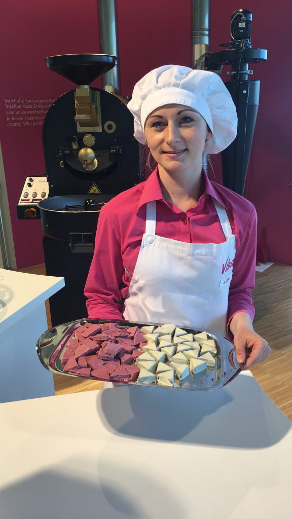 Diese Confisseurin reicht den Gästen Kostproben.