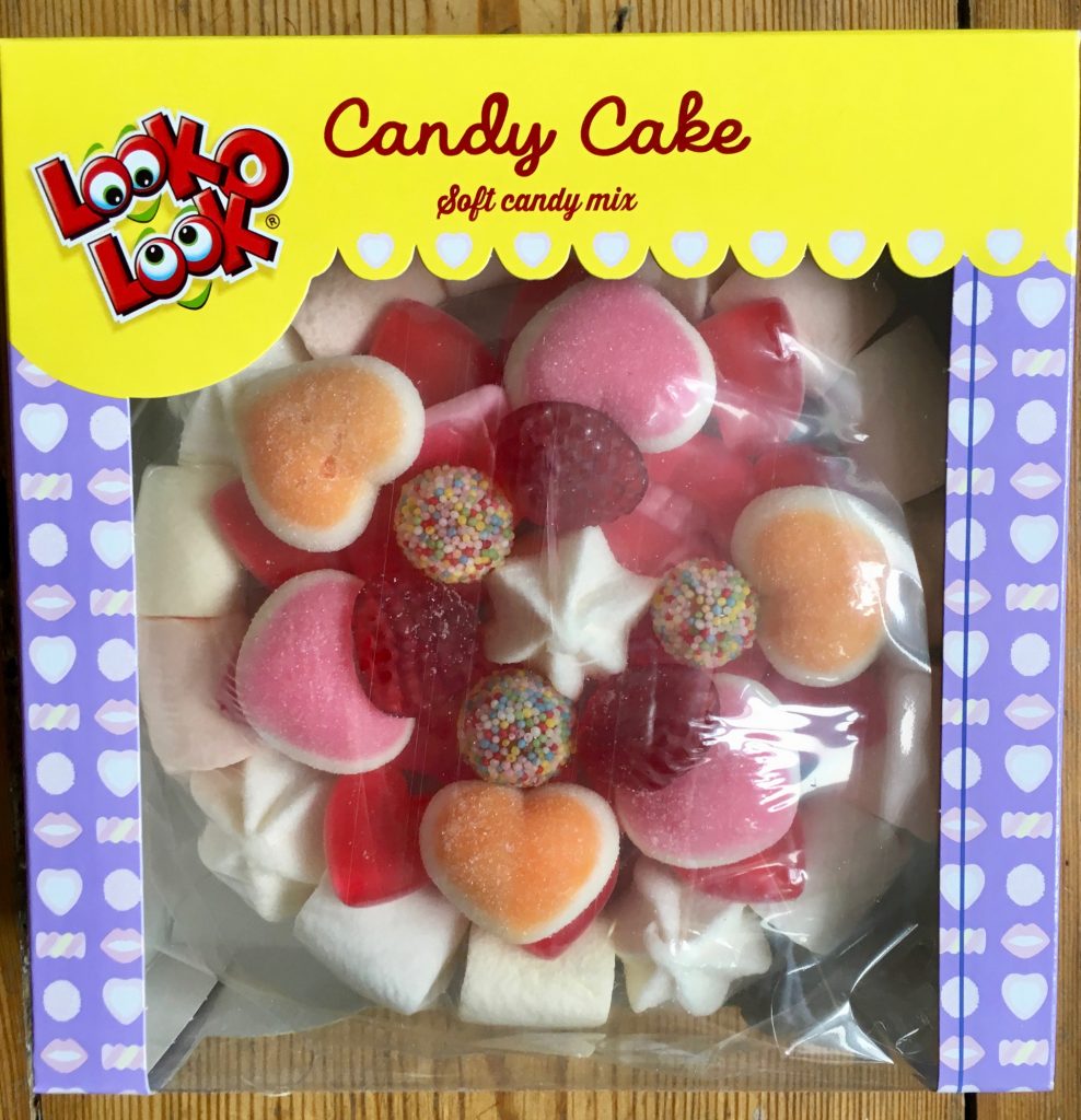 Von Look-O-Look, dem Spezialisten für originelle Weingummi- und Marshmallow-Gebinde aus Holland, kommt der „Candy Cake“ mit vielen, liebevoll zum Kuchen getürmten Einzelstücken, viele davon in Herzform, mit einem Gesamtgewicht von 315 Gramm!