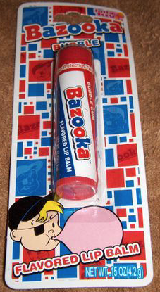 Bazooka-Joe kennen bzw. kannten wir als Kaugummi (keine Ahnung, ob es das noch gibt) – immer besonders schön künstlich, aber irgendwie auch so wie Kaugummi schmecken musste. Jetzt also auch für die Lippen.